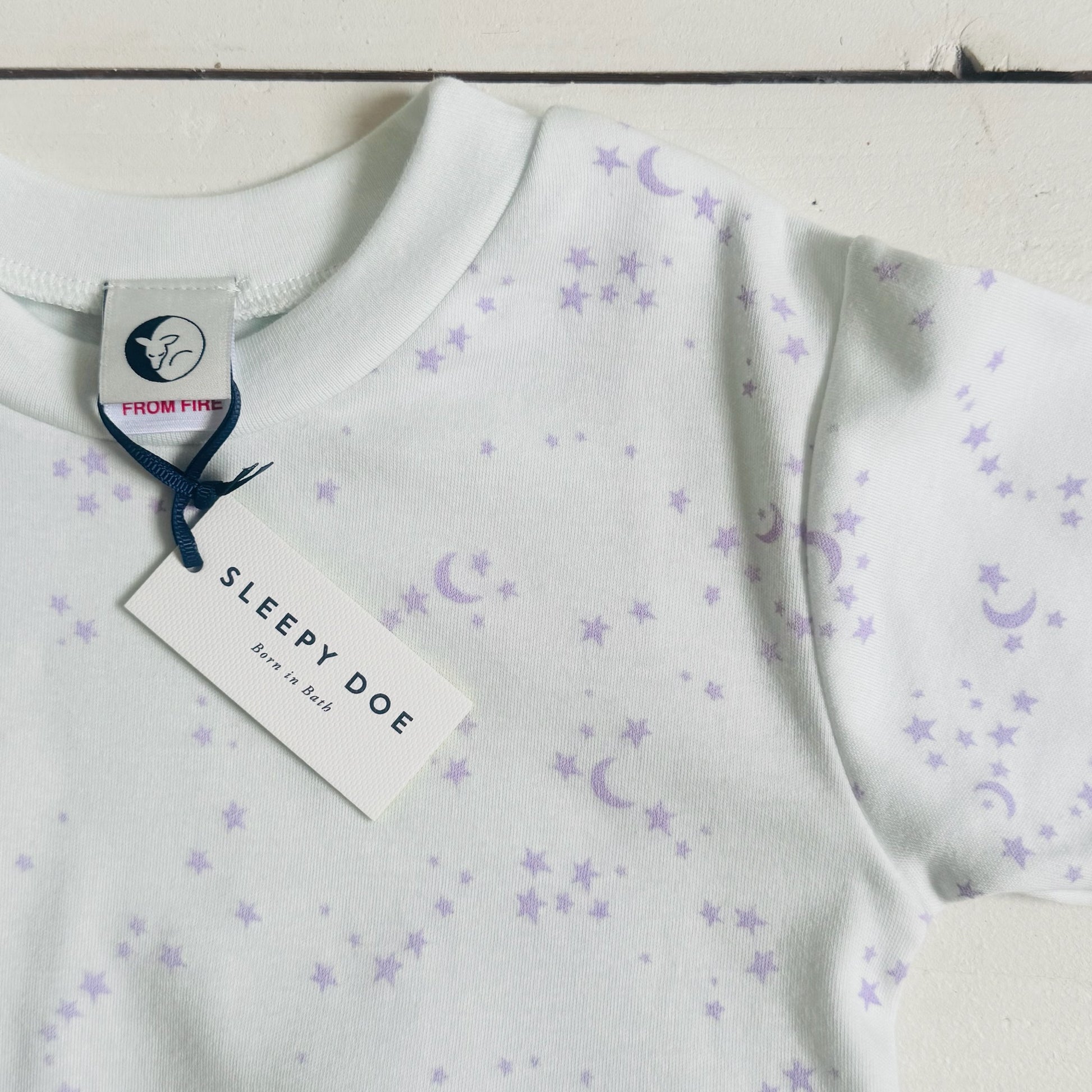 Our favourite snuggly organic cotton PJs in a dreamy moon and stars print on a blue tinged off-white base cloth. Cuddle up and get ready for sweet dreams. Why not size up for extra comfort and room to grow.
