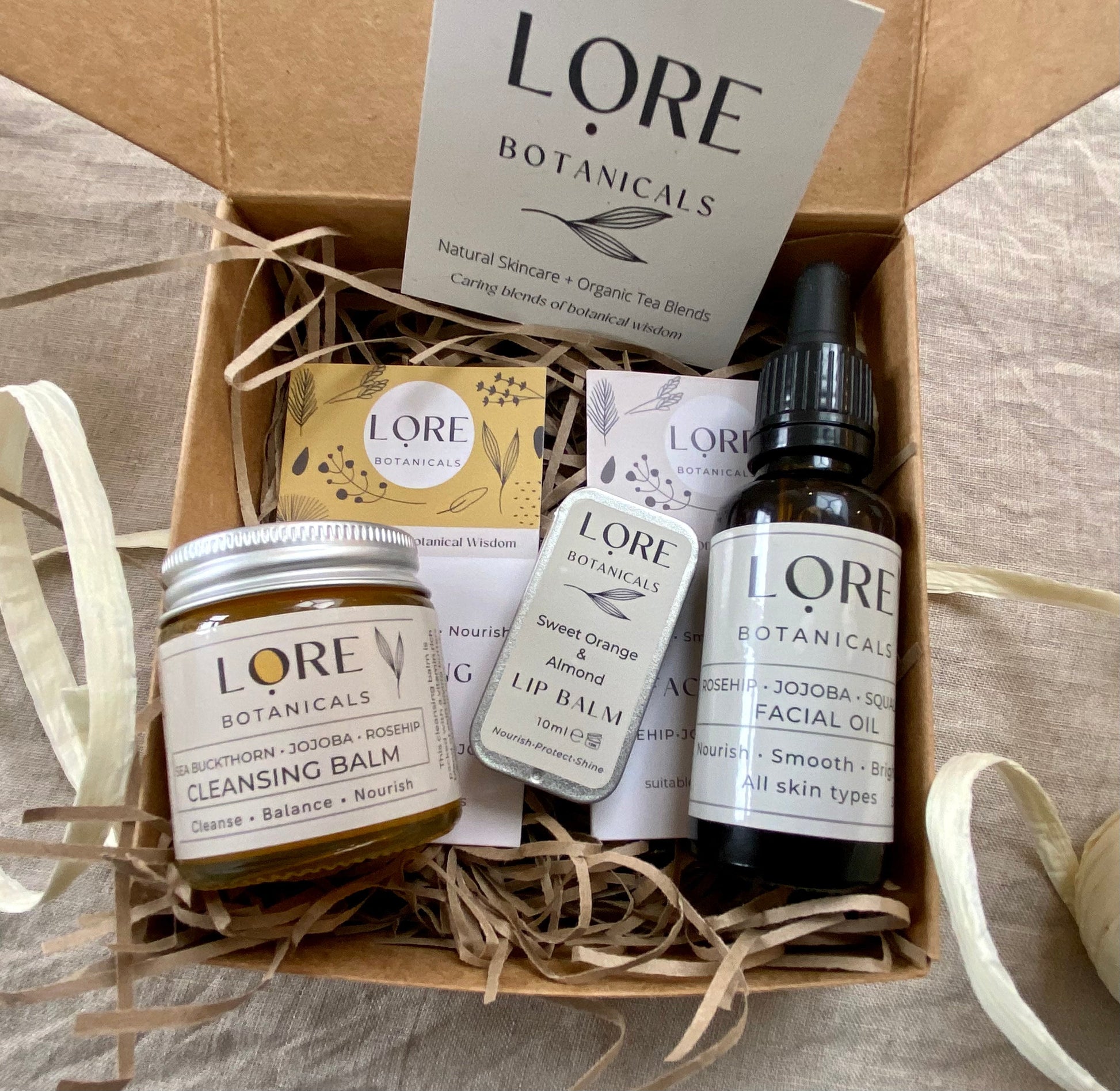 Lore Botanicals all natural skincare gift box is a complete set of beautifully blended skincare, suitable for all skin types.