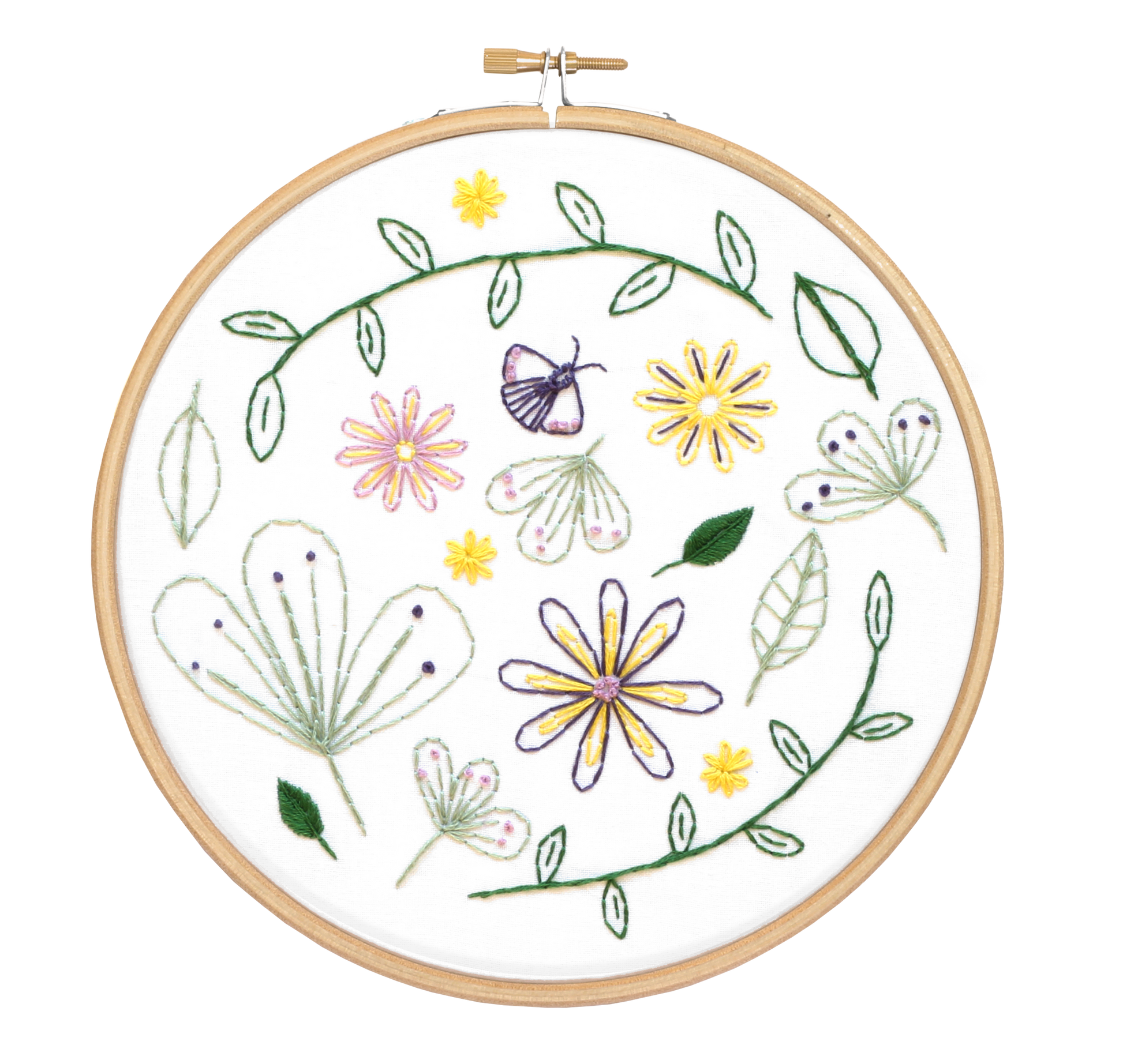 Contains: pre-printed 100% cotton fabric, DMC embroidery thread, 7” wooden embroidery hoop, embroidery needle, pattern card and detailed instructions.